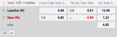 Thông tin tỷ lệ bóng đá Lesotho vs Nam Phi:
