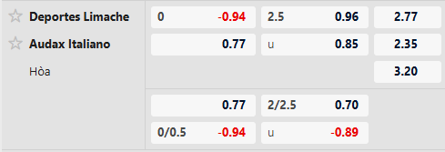 Mức chấp châu Á được đưa ra ở trận đấu này là hòa được thua. Tỷ lệ kèo này cho thấy lợi thế sân nhà với Limache không có nhiều ý nghĩa. Đội chủ nhà cũng chỉ thắng kèo có 6 trận từ đầu mùa, bằng một nửa so với Audax Italiano, đội thắng kèo chỉ ít hơn Coquimbo Unido.
