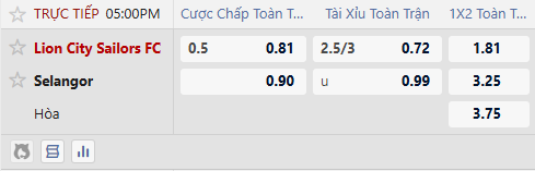 Thông tin tỷ lệ kèo Lion City Sailors vs Selangor: