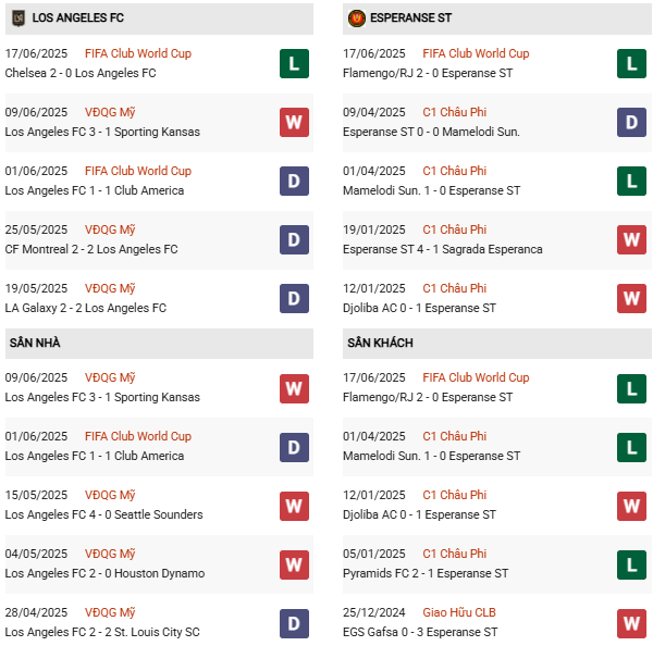 Nhận định Los Angeles vs Esperance, 05h00 ngày 21/6, bảng D FIFA Club World Cup 2025, sân Geodis Park. Esperance cho thấy nhiều điểm yếu trong trận thua Flamengo, không chỉ thiếu sắc bén trong khâu tấn công, họ còn để lộ khoảng trống nơi hàng phòng ngự.