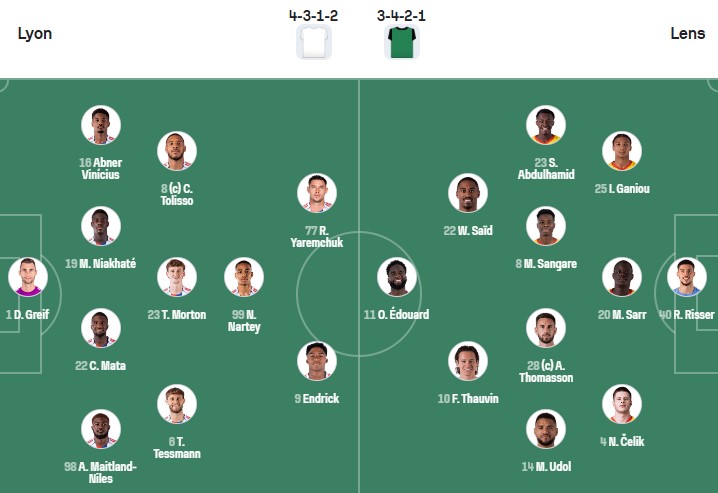 Đội hình dự kiến Lyon vs Lens:
