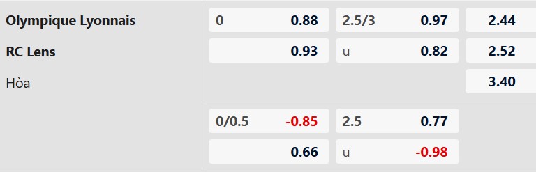Thông tin tỷ lệ kèo bóng đá Lyon vs Lens:
