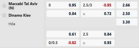 Soi kèo tài xỉu Maccabi Tel Aviv vs Dinamo Kiev: