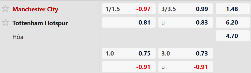 Thông tin tỷ lệ Man City vs Tottenham:
