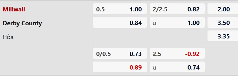Thông tin tỷ lệ bóng đá Millwall vs Derby County: