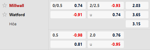 Millwall đang là đội được đánh giá cao hơn với mức kèo 1/4 bàn. Millwall bất bại 5/6 lần gặp nhau ở 3 mùa vừa qua, trong đó có đến 4 thắng lợi. Rõ ràng với bối cảnh Watford vẫn đang quá rệu rã, cơ hội để đội chủ nhà giành trọn 3 điểm là cao hơn rất nhiều.