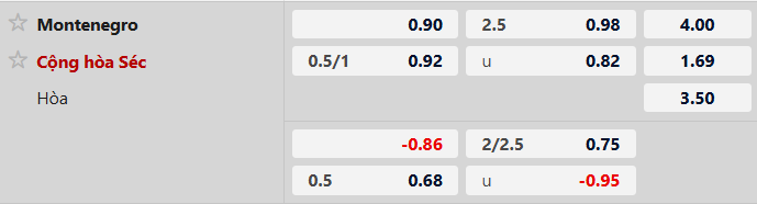 Soi kèo tài xỉu Montenegro vs Séc: