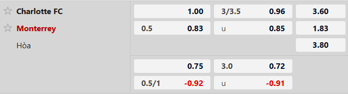 Soi kèo tài xỉu Monterrey vs Charlotte: