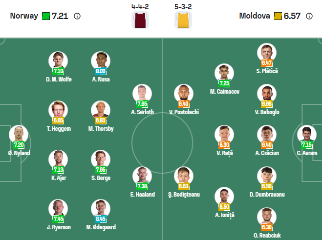 Đội hình dự kiến Na Uy vs Moldova: