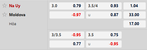 Na Uy được đánh giá vượt trội khi chấp tới 3 bàn. Na Uy đang duy trì hiệu suất ghi bàn rất ấn tượng và khả năng họ tạo ra một trận đấu bùng nổ là hoàn toàn khả thi, nhất là khi Moldova thường xuyên bộc lộ sự yếu kém nơi hàng thủ. Trận lượt đi đã chứng kiến Na Uy thắng đậm 5-0, và kịch bản tương tự hoàn toàn có thể tái diễn. Với tương quan hiện tại, lựa chọn kèo trên là nên được theo cược.