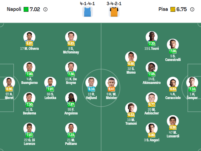 Đội hình dự kiến Napoli vs Pisa:
