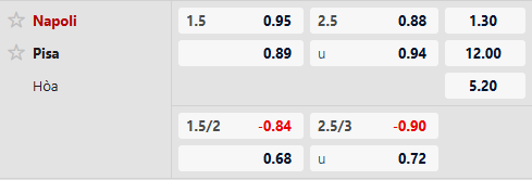Thông tin tỷ lệ kèo bóng đá Napoli vs Pisa: