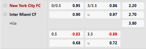 Thông tin tỷ lệ New York City vs Inter Miami: