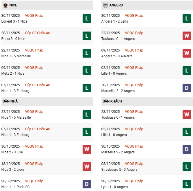 - Trên sân nhà, Nice thắng 5, thua 2 trước Angers.