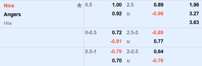 Lẻ bàn thắng: 8/11 trận đối đầu trước đó giữa Nice vs Angers có tổng bàn thắng không chia hết cho 2. Ngoài ra, 9/15 trận vừa qua của Nice và 10/13 trận gần đây của Angers đều chứng kiến điều tương tự.