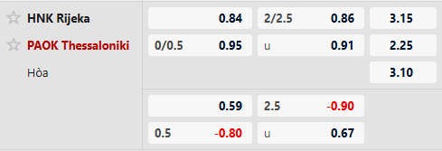 Soi kèo tài xỉu NK Rijeka vs PAOK:
