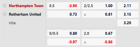 Thông tin tỷ lệ kèo Northampton vs Rotherham: