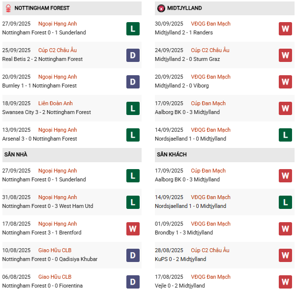 Thành tích đối đầu Nottingham vs Midtjylland: