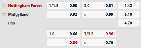 Nottingham được đánh giá chấp đến 1 1/4 bàn ở cuộc đấu này. Rõ ràng đây không phải là mức kèo hợp lý khi đội chủ nhà gần như chạm đáy còn các vị khách cực kỳ thăng hoa. Kinh nghiệm ở sân chơi châu Âu của Midtjylland cũng vượt xa đội chủ nhà. Chính vì vậy, không loại trừ khả năng đội khách sẽ có 3 điểm và thắng luôn kèo châu Á.