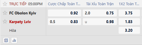 Thông tin tỷ lệ Obolon Kyiv và Karpaty Lviv: