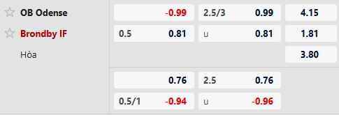Thông tin tỷ lệ bóng đá Odense vs Brondby: