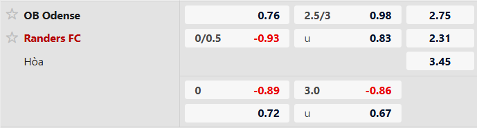 Tỷ lệ chấp được niêm yết là 1/4 bàn nghiêng về phía Randers FC. Khá thú vị khi Odense mới là đội chiếm ưu thế đối đầu khi bất bại 8/10 lần liên tiếp đụng độ Randers FC. Thế nhưng ở thời điểm hiện tại, với phong độ và cả chất lượng đội hình vượt trội, không bất ngờ nếu đội khách có thể thu về 3 điểm trọn vẹn.
