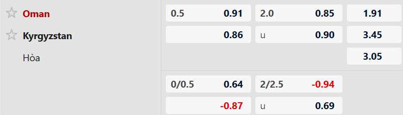 Thông tin tỷ lệ kèo Oman vs Kyrgyzstan: