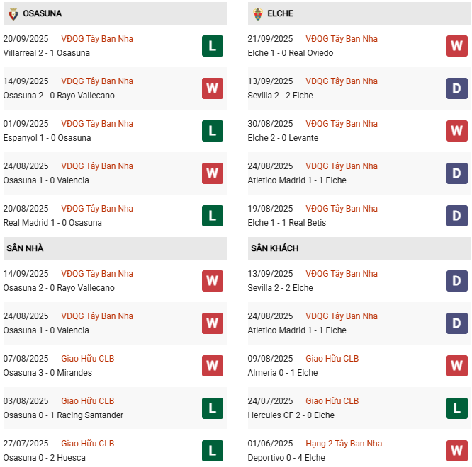 - Osasuna thắng 3, hòa 6, thua 1 trong 10 trận gặp Elche gần đây.