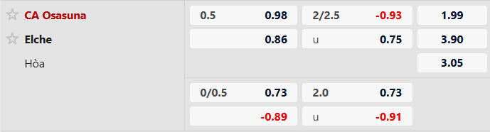 Thông tin tỷ lệ bóng đá Osasuna vs Elche: