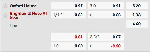 Thông tin tỷ lệ bóng đá Oxford United vs Brighton: