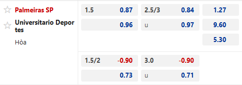 Thông tin tỷ lệ kèo Palmeiras vs Universitario:
