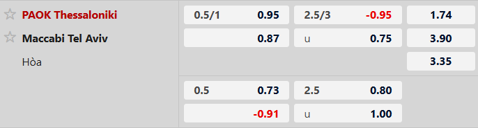 Thông tin kèo bóng đá PAOK vs Maccabi Tel Aviv:
