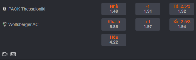 PAOK chấp 1 hòa cả trận. Với dàn cầu thủ dày dạn kinh nghiệm thi đấu châu Âu cùng chất lượng đội hình vượt trội, đội bóng Hy Lạp nhiều khả năng sẽ tận dụng lợi thế sân nhà để tạo ra khoảng cách an toàn ngay từ lượt đi. Ngược lại, Wolfsberger khởi đầu mùa giải một cách chệch choạc và có dấu hiệu hụt hơi. Trước tình hình đó, nếu PAOK thi đấu đúng khả năng và không bỏ lỡ cơ hội, họ hoàn toàn có thể giành chiến thắng cách biệt và vượt qua kèo châu Á một cách thuyết phục.