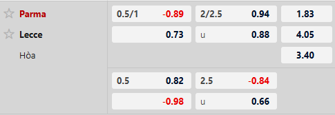 Parma được giới chuyên gia tin tưởng khi xếp ở cửa trên với tỷ lệ kèo 3/4 bàn. Parma đang cho tất cả thấy họ là tập thể thực sự đáng gờm khi được thi đấu trước sự cổ vũ của đám đông khán giả nhà. Chỉ phải tiếp đón Lecce đang đứng áp chót trên BXH là cơ hội tốt để Parma giành thêm một chiến thắng.