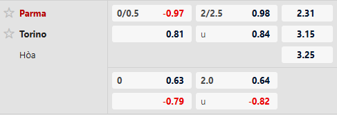 Parma được đánh giá cao hơn đôi chút khi chấp 1/4 bàn cả trận. Tuy nhiên, lịch sử đối đầu giữa hai đội lại cho thấy sự cân bằng rõ rệt. Trong 5 lần gặp nhau gần nhất, Parma và Torino mỗi bên chỉ có 1 chiến thắng, còn lại 3 trận kết thúc bất phân thắng bại. Với những gì đã thể hiện, kịch bản chia điểm rất dễ lặp lại, và lựa chọn cửa dưới sẽ là phương án an toàn hơn.