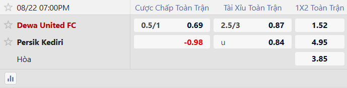 Thông tin tỷ lệ Persik Kediri vs Dewa United: