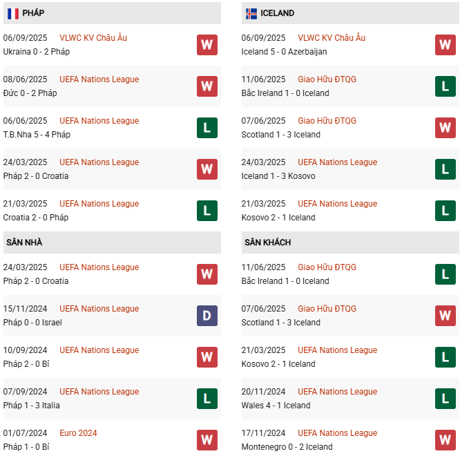- Trên sân nhà, Pháp thắng 3, hòa 1 trước Iceland.