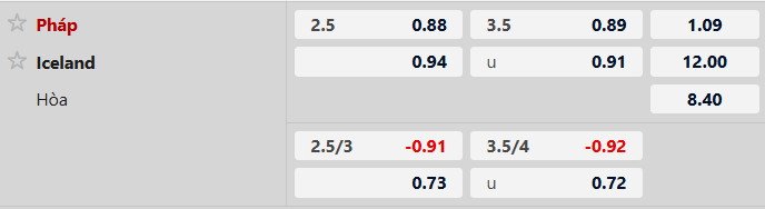 Thông tin tỷ lệ kèo bóng đá Pháp vs Iceland:
