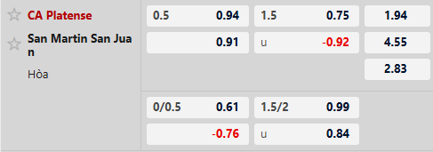 Thông tin tỷ lệ kèo Platense vs San Martin SJ:
