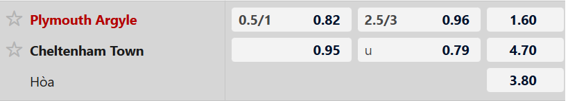 Thông tin tỷ lệ kèo Plymouth Argyle vs Cheltenham Town: