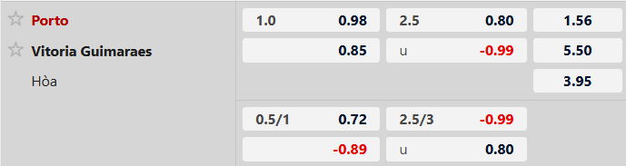 Thông tin tỷ lệ kèo Porto vs Vitoria Guimaraes: