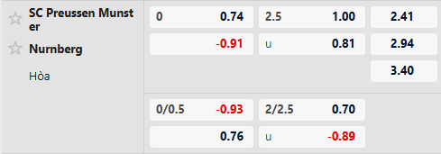 Thông tin tỷ lệ bóng đá Preussen Munster vs Nurnberg: