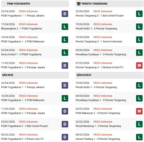 - PSIM Yogyakarta toàn thua cả 3 trận gặp Persita gần đây.