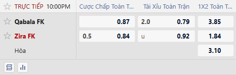 Thông tin tỷ lệ kèo Qabala vs Zira FK:
