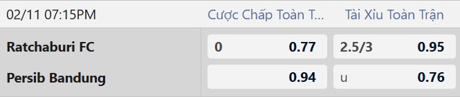 Thông tin tỷ lệ cược Ratchaburi vs Persib Bandung: