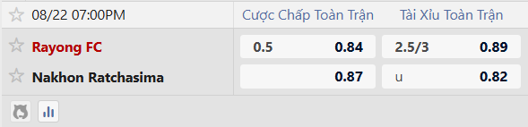 Thông tin tỷ lệ Rayong vs Nakhon Ratchasima: