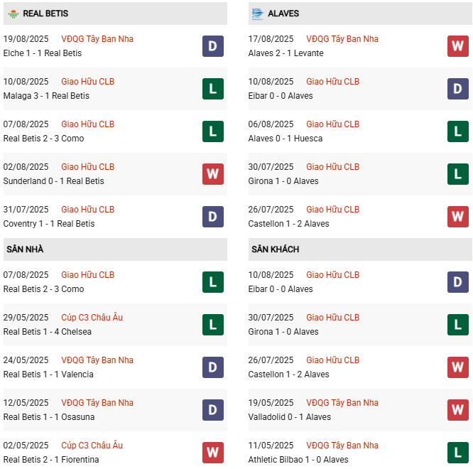 - Trên sân nhà, Real Betis thắng 4, thua 4 trước Alaves.