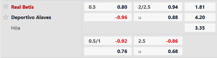 Thông tin tỷ lệ kèo bóng đá Real Betis vs Alaves: