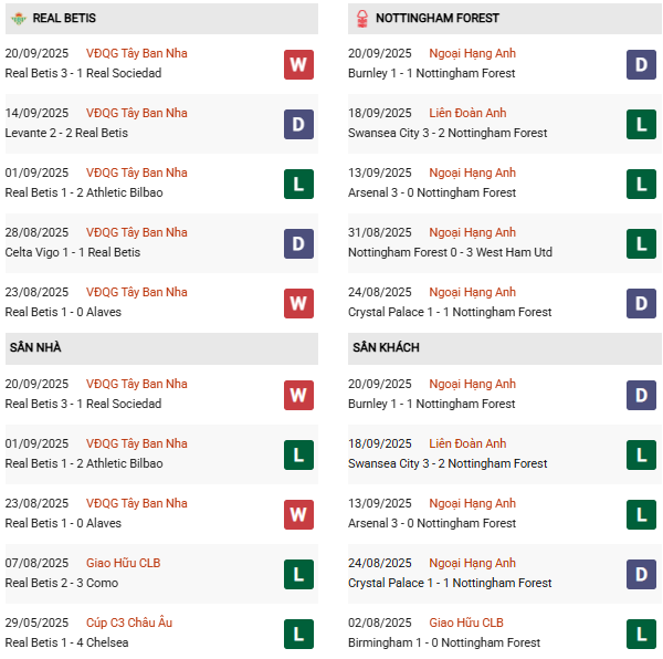 - Real Betis thắng 1-0 trước Nottingham gần đây.