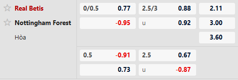 Thông tin tỷ lệ kèo bóng đá Real Betis vs Nottingham: